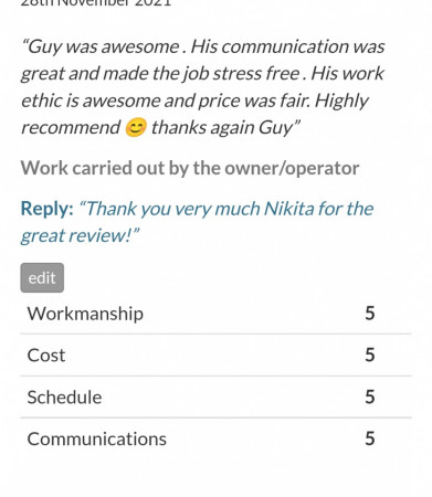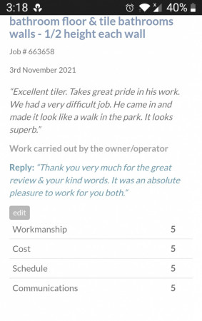 If you are looking for a tiler who has constantly proven to be honest, communicates well, does the job right with expertise, then please contact me for a free measure and a very competitive quote .