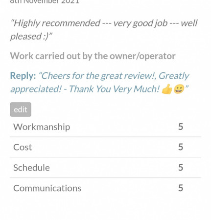 " MY PROJECTS " TO READ SOME OF THE EXCELLENT REVIEWS I HAVE UPLOADED FROM MY CUSTOMERS ON BUILDERSCRACK.
