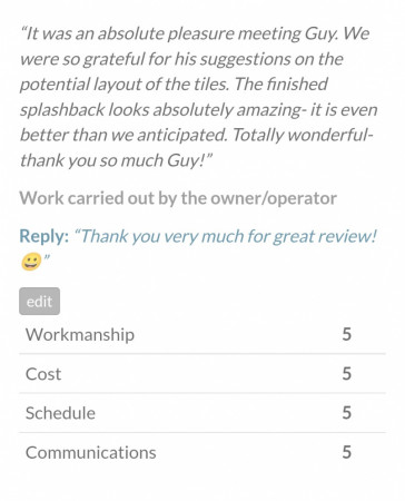We are happy to announce that G J Hudson Tiling has been selected to receive the Builderscrack Top Rated Tradie award.