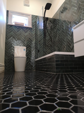 In short: we've engaged Sean on two separate occasions and we couldn't be happier! We'll contract Sean for all our future tiling needs and highly recommend him to others. Job 1 - 2020: Bathroom floor, enclosed shower (smoke grey double herring bone design), toilet floor and laundry floor. Job 2 - 2021: a) Main bathroom and Ensuite: floor to ceiling tiles, 3m studs, niches, hobs, and underfloor heating. Floor tiles, standard. Wall tiles included standard and hexagon feature strip. b) Laundry cupboard/nook: floor to ceiling tiles. c) Kitchen nook backsplash (ice blue double herring bone design). So happy he convinced me to do underfloor heating! We use it ALL the time. This is the experience you need when doing something for the first time. We are a few years on now, and we couldn't be happier with how everything is holding up. From initial quote, right through to finished products Sean was awesome to work with. Took time to understand my vision, then consulted on some of the challenges we would face along the way, was clear about what and when he needed things by (e.g. plumbing, straight floor/wall lines, niche styles and grout thickness/colour), and allowed me to make the final decisions. Sean was always on time, super professional, and kept me in the loop throughout the whole process. I really appreciated his 'no surprises' mindset, raising concerns early if something happened out of his control. The quality of his work is top-notch, and my spaces still look incredible today. If you need a skilled and reliable tiler, I highly recommend Sean. Thanks, Sean, for doing such a fantastic job! Photo 1: Grey Smoke subway tile, double herring bone layout. Feature wall in main bathroom (job 1) Photo 2-4: Main Bathroom. Grey marle floor tile, tray drain, hob. Hexagon feature strip, Wall tile standard carrara grey tile. Photo 5: Laundry nook. Photo 6: Ensuite (all the same tiles as the bathroom) Photo 7 - 9: Kitchen splashback. Ice blue subway tile, double herringbone layout. Reply: We’re thrilled you’re happy with the service – thanks for sharing!