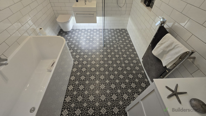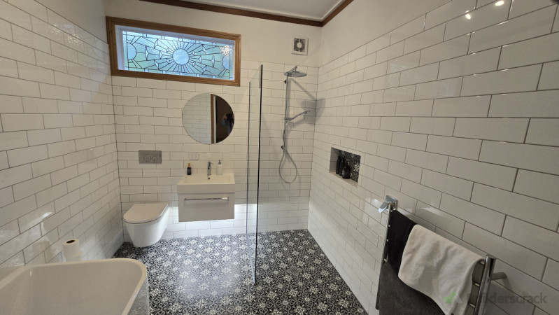 In short: we've engaged Sean on two separate occasions and we couldn't be happier! We'll contract Sean for all our future tiling needs and highly recommend him to others. Job 1 - 2020: Bathroom floor, enclosed shower (smoke grey double herring bone design), toilet floor and laundry floor. Job 2 - 2021: a) Main bathroom and Ensuite: floor to ceiling tiles, 3m studs, niches, hobs, and underfloor heating. Floor tiles, standard. Wall tiles included standard and hexagon feature strip. b) Laundry cupboard/nook: floor to ceiling tiles. c) Kitchen nook backsplash (ice blue double herring bone design). So happy he convinced me to do underfloor heating! We use it ALL the time. This is the experience you need when doing something for the first time. We are a few years on now, and we couldn't be happier with how everything is holding up. From initial quote, right through to finished products Sean was awesome to work with. Took time to understand my vision, then consulted on some of the challenges we would face along the way, was clear about what and when he needed things by (e.g. plumbing, straight floor/wall lines, niche styles and grout thickness/colour), and allowed me to make the final decisions. Sean was always on time, super professional, and kept me in the loop throughout the whole process. I really appreciated his 'no surprises' mindset, raising concerns early if something happened out of his control. The quality of his work is top-notch, and my spaces still look incredible today. If you need a skilled and reliable tiler, I highly recommend Sean. Thanks, Sean, for doing such a fantastic job! Photo 1: Grey Smoke subway tile, double herring bone layout. Feature wall in main bathroom (job 1) Photo 2-4: Main Bathroom. Grey marle floor tile, tray drain, hob. Hexagon feature strip, Wall tile standard carrara grey tile. Photo 5: Laundry nook. Photo 6: Ensuite (all the same tiles as the bathroom) Photo 7 - 9: Kitchen splashback. Ice blue subway tile, double herringbone layout. Reply: We’re thrilled you’re happy with the service – thanks for sharing!