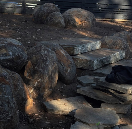 Sefton ave, Grey Lynn project. Vitex fence, bluestone crazy paving, boulders and garden installation