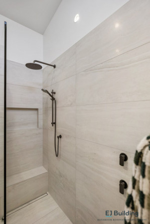 Modern ideas for small bathroom tile layout. - Mark Tiling shares some inspiration participated in tiling from a bathroom renovation project of EJ Building , that can help you create a bathroom you love . - One of the most important parts of renovation is to consider color, shapes, sizes, layouts and perfection of tiles. For small bathroom, tiles with medium and large sized, bright, glossy can make an impression of a wider space than in fact, choose matte black tiles that are slip resistant are great for floors, with attached pictures on this article shared , combined with glossy light blue tiles, the layout is designed to be stacked, this symmetrical arrangement creates simple, bright lines give the bathroom a luxurious and light look. - Using the same, black tile for both the floor and the wall in the shower to create unbroken lines, give the space more depth and contrast the light blue walls outside the shower and the attached recliner integrates seamlessly into wall and floor tiles of the shower for a truly relaxing experience, extra storage a niche in shower will reduce the clutter by placing all items into a proper place. All are a unique way to highlight the bathroom. - Once you’ve completed this project, it can make a huge difference to the look of your bathroom, adding both economic and aesthetic value to your home. - If you have any need for tiling and waterproofing . Please contact : - Mark Tiler : 0275075723 - Email : mark.tiler83@gmail.com - Website : www.marktiling.co.nz - Facebook : “ Mark Tiling LTD “