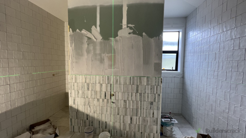Large 1200x600 tiles and handmade subway tiles for feature wall at Tile Depot Head Office.