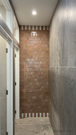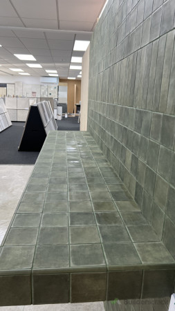 Large 1200x600 tiles and handmade subway tiles for feature wall at Tile Depot Head Office.