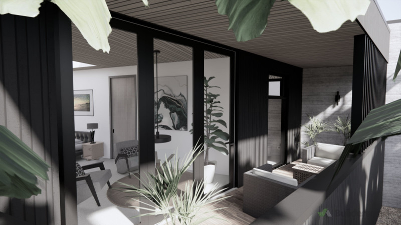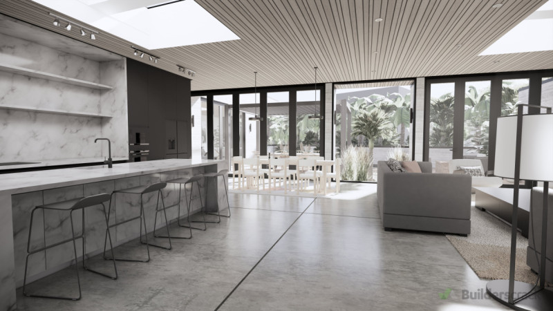 Nestled into a quiet suburban street in Waikanae Beach, "Seaside Escape" blends modern sophistication and natural charm. With a focus on durability, sustainability, and timeless design, every aspect of this easide sanctuary is meticulously crafted to create a luxurious, yet practical, living environment. Inside, this escape from Wellington boasts three bedrooms with indulgent carpet finishes. The main living areas marry elegance and functionality through features such as polished concrete floors and handleless cabinetry. The living spaces are a testament to spaciousness, with extravagant 3-meter-high timber ceilings and large opening skylights that flood the interior with natural light - seamlessly connecting indoor living with the sounds of the nearby coastal landscape. An expansive laundry offers amble storage and easy access to outdoor facilities, doubling as a mudroom. No feature is overlooked – the rubbish storage is hidden from day-to-day view. There is even a dedicated gym suitable for all fitness needs. Sustainability takes centre stage with roof-mounted solar panels and a solar kit discreetly integrated into the laundry storage space. This eco-friendly living is punctuated by the solar hot water heating. Water tanks within the slab will facilitate rainwater harvesting, keeping the stunning landscaping perpetually hydrated year round. The design is more than a retreat – offering the ideal space for guests, friends, and family. Occasional seating surrounds an opulent grand piano, in arm ’s reach of wine cellar. Guests have easy access to music, and a glass of bubbles in the glamorous and comfortable entertainment space. Outside, the home’s exterior design harmonises with the coastal setting, featuring cast concrete and shou sugi ban timber cladding – both are durable enough to withstand the rigors of seaside conditions yet exude a clean and elegant visual appeal. The landscaped grounds are a symphony of vibrant, evergreen plants including ferns, magnolias, nikau palms, grasses, and puka, each carefully chosen to complement the rugged elegance of the architecture. A large outdoor entertainment space beckons with a plunge pool and integrated spa, providing a serene retreat for relaxation and enjoyment - all amidst the coastal beauty. From the thoughtful design features to the curated interiors and landscaped surroundings. "Seaside Escape" is a testament to timeless luxury, complementing the harsh coastal environment while offering a sanctuary of comfort and style.