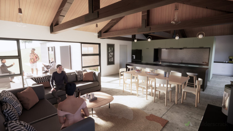 Quail Rise Residence stands as a beautifully designed home in Lower Shotover, providing a tranquil and functional living space for its inhabitants. The house features a thoughtfully laid out four-bedroom, three- bathroom design with dual lounges, a spacious kitchen and scullery, and a generously sized garage that cleverly incorporates laundry facilities and additional storage. The design of the home gracefully integrates both indoor and outdoor living environments. The kitchen extends onto a southern-facing outdoor area, perfect for enjoying morning light with breakfast, while the north-facing decking accessible from the living and dining areas promotes seamless flow between inside and outside spaces. This layout is ideal for both daily family life and social gatherings. A distinct architectural feature of the home is the incorporation of large recycled bridge beam trusses across the exposed timber ceilings in the main living areas and the master suite. These elements provide a touch of rustic charm while maintaining a modern aesthetic that complements the natural surroundings. The additional living space above the garage includes two queen-sized bedrooms and a bathroom, making it an ideal retreat for guests or family members seeking privacy. Materials throughout the home have been selected for both their aesthetics and sustainability, with large glass panels and sliding doors maximizing natural light and enhancing views of the scenic Coronet Peak. Quail Rise Residence is more than a place to live—it’s a space thoughtfully crafted for comfort, privacy, and integration with its beautiful setting. It’s a modern home that balances functional design with an inviting atmosphere, making it a perfect backdrop for both relaxation and entertaining.