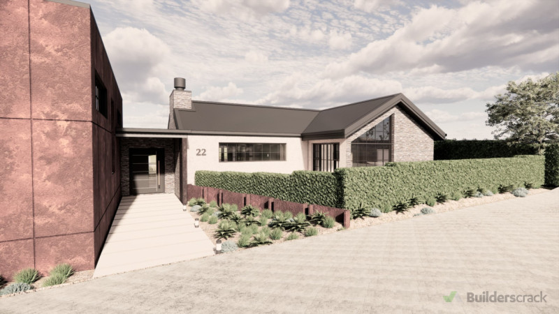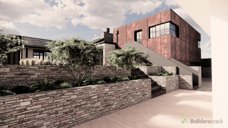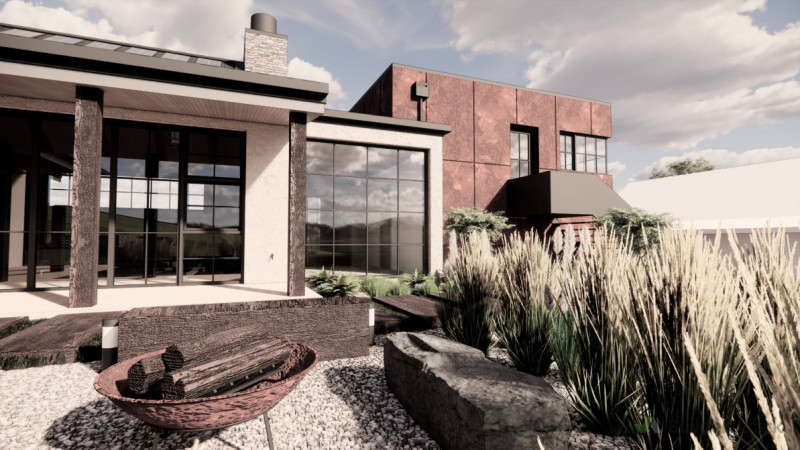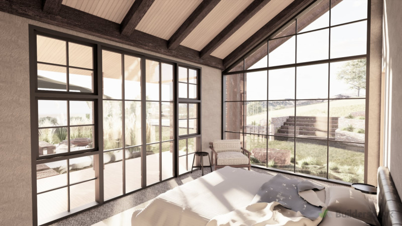 This home is a seamless composition of natural materials, thoughtful craftsmanship, and contemporary refinement, creating a strong yet elegant presence within its environment. Locally sourced stone forms the backbone of the design, grounding the structure in its surroundings while creating a continuous flow from exterior walls to interior fireplaces, reinforcing a sense of permanence and cohesion. Corten steel cladding, with its evolving patina, introduces a rich, organic contrast against the cooler tones of the corrugated metal roofing, which adds a contemporary edge and durability. Timber elements, from exterior pergolas to exposed interior beams, soften the composition, bringing warmth and authenticity to the design. Expansive Crittall and French-style windows enhance the home’s connection to nature, drawing in light and framing views of a landscape designed to complement the architecture. Ornamental grasses, low-maintenance perennials, and sculptural shrubs create a soft, dynamic contrast to the structured elements of corten steel and stone, while reclaimed timber steps and terraced stone walls create a natural flow between levels. Inside, a restrained palette of raw plaster, warm neutrals, and natural wood ensures an understated elegance, with open shelving, vintage-inspired fittings, and tactile furnishings reinforcing a lived-in, welcoming atmosphere. The outdoor living spaces echo the warmth of the interiors, with corten steel-edged garden beds, stone seating, and a feature fireplace that mirrors the textures found inside. The result is a home that evolves naturally over time, where materials weather beautifully, and every element—inside and out—feels deeply rooted in its place. Balancing structure and softness, tradition and modernity, this design creates an environment that is both enduring and inviting.