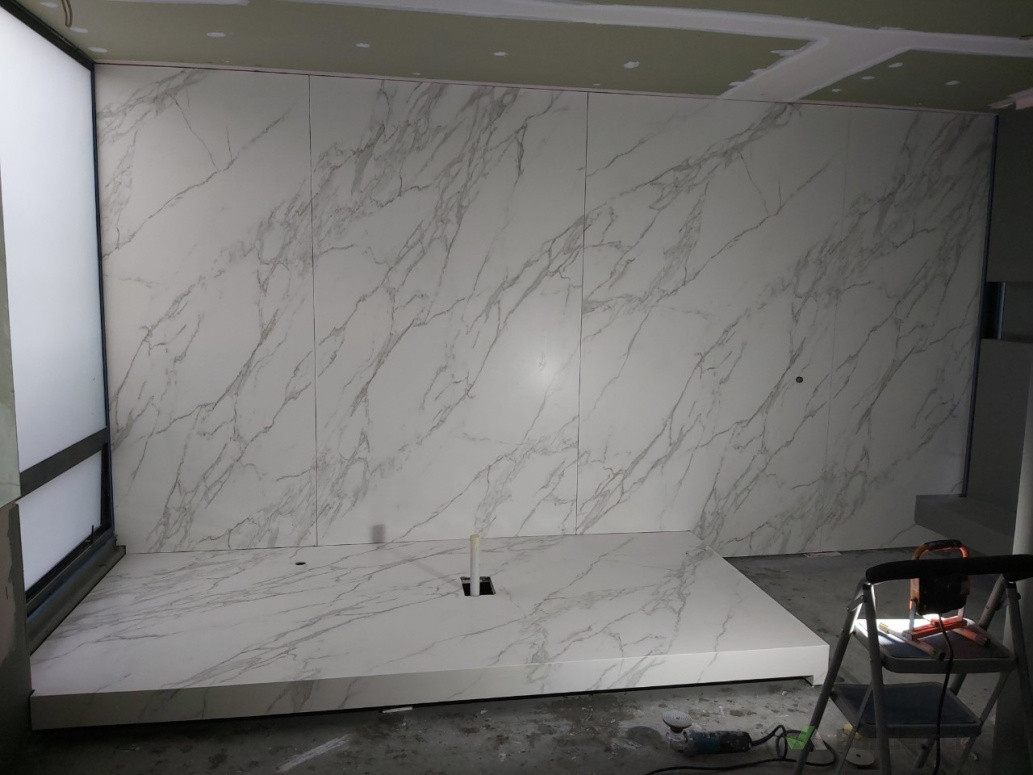 – Large-format Neolith and natural stone installations