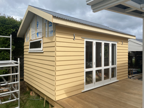 My latest project was a 5mtr x 3.2mtr Office built off the ground with a small storage shed at the back.