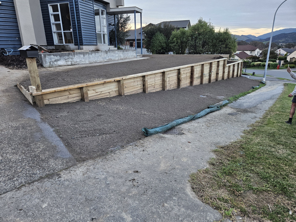 Matt installed a new concrete driveway for us last year, and we couldn't be happier. Our old driveway had a huge dip in it that meant it scraped our car every time we drove on it. We thought this would be a really challenging job, but Matt handled the whole thing really well and professionally - he clearly knows what he's doing. We contacted Matt and he got back in touch really promptly. He came to our house I think on the same day after work and talked us through his proposed solution. He measured up thoroughly (in the rain!), and got his quote to us in the next few days. He was really smart with his contouring of the driveway, and allowed for drainage (which not everyone else did). He fit the driveway height in perfectly with a new deck we built. His quote was reasonable, and Matt honoured his word at every step of the way. The work was done properly, tidily, on time, and within budget. No hassles at all. We're really happy and would thoroughly recommend Matt - thanks Matt, we're stoked!