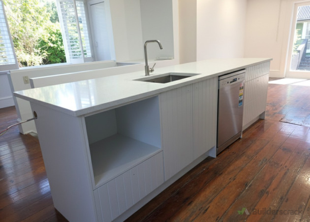 Project Overview: This project involved creating a fully custom, high-end kitchen featuring V-groove painted doors and panels, a Snow White benchtop, and new modern appliances. The client wanted a clean, minimalist, and premium finish with detailed craftsmanship. Scope of Work: Removal of the old kitchen and preparation of the site Measurement, design, and construction of a full custom kitchen V-Groove painted doors and panels made to exact specifications Installation of soft-close drawers, hinges, and premium hardware Fitting a Snow White benchtop with sink and appliance cut-outs Installing a stainless steel undermount or drop-in sink (depending on project) Placement and alignment of new appliances including oven, cooktop, dishwasher, and rangehood Installation of tall units, base cabinets, overheads, and feature panels Toe kicks, fillers, scribes, and final detailing for a seamless finish Electrical and plumbing allowances where required Full clean-up and handover Result: The final kitchen delivered a bright, modern, and elegant look. The V-groove painted finish provided a stylish texture, while the Snow White benchtop added a luxurious, clean appearance. With new appliances and a stainless steel sink, the space became both functional and visually stunning. The client loved the premium workmanship and attention to detail. Client Feedback: The client was extremely satisfied with the custom finish, the smooth installation process, and the high standard of paintwork and detailing.