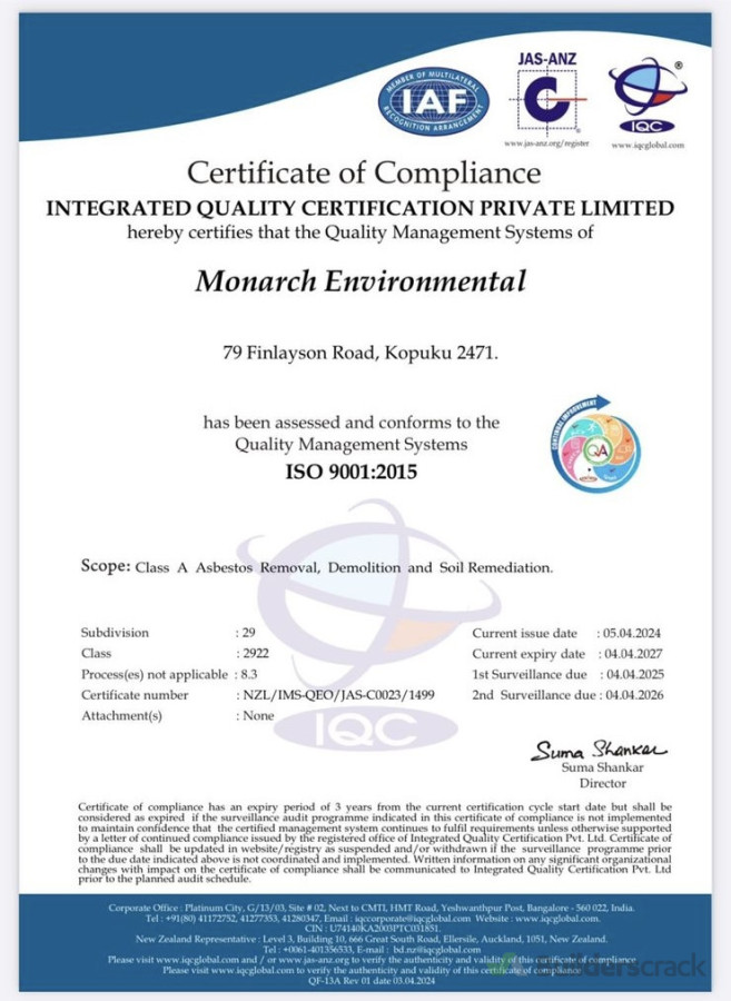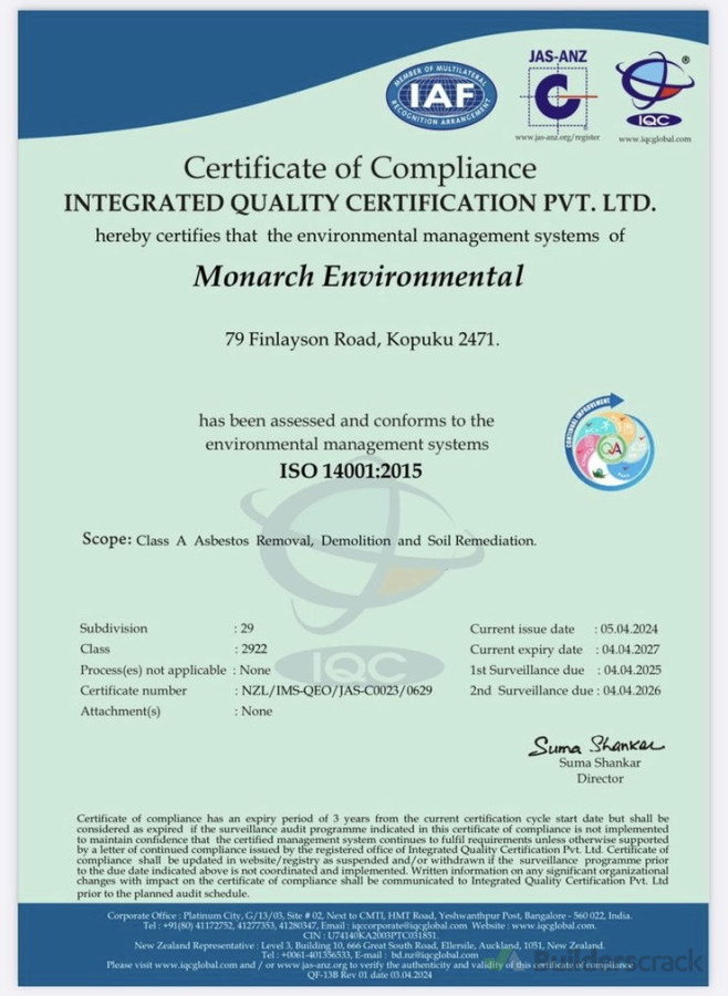 With over 24 years of industry experience Monarch Environmental Limited offers competitive pricing for all Asbestos Removal, Disposal, Testing, Surveying, Demolition work and soil remediation, Contact us for advice, recommendations, site visits or a no obligation quotation.
