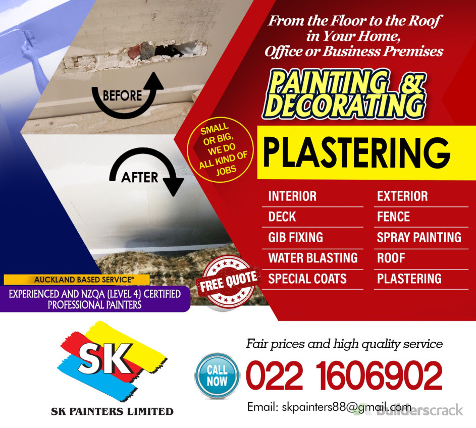 We are qualified (NZQA -4 BCITO )and Experienced Business providing Interior and Exterior painting, Special coatings,Spray painting, Plastering and Gib fixing, We deliver high -quality workmanship with attention to details. All at reasonable and honest prices.