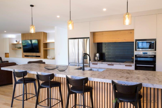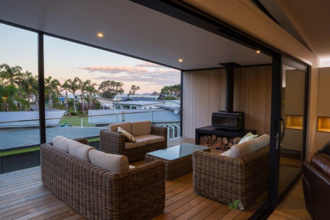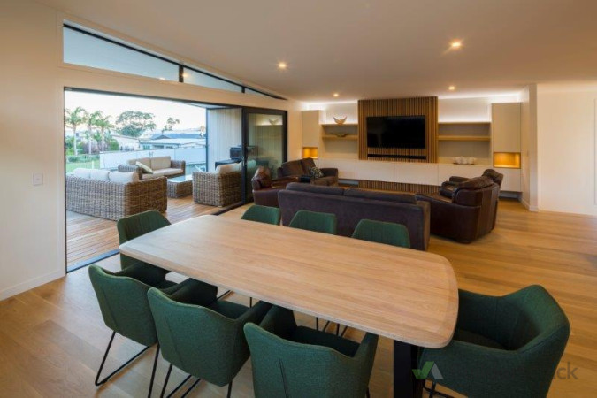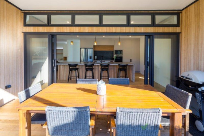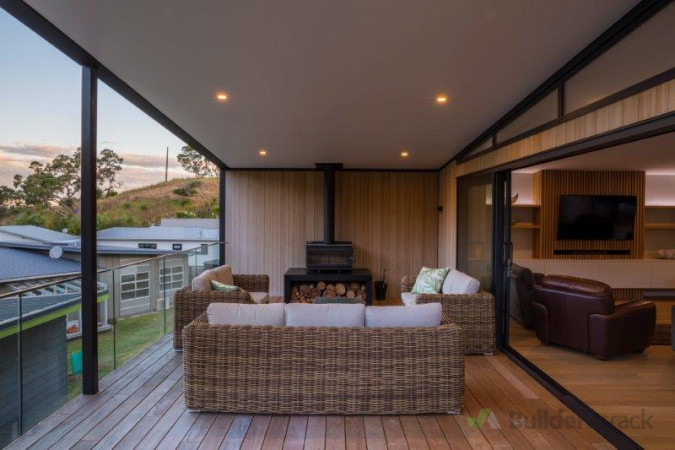 Clad in ABODO Vulcan thermally modified timber cladding with ABODO screening, bagged brick veneer and vertical profiled metal cladding. The interior features white Oak flooring, stairs and joinery. Polished concrete ground floor slab. Paint finished plasterboard is used to offset the warmth of the timber.