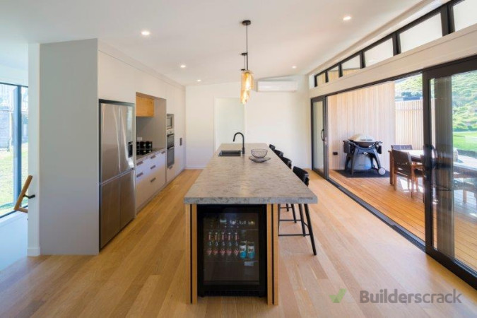 The site lies at the foot of a valley with a north facing aspect and receives all day sun. It presented many constraints most notably how heavily overlooked it was by neighbouring houses, particularly to the north. In addition, the permitted setbacks were onerous and the existing double garage was to remain, creating a compact building platform. Sea views could be obtained, but only from a high position on the eastern side of the site. Lovely views to the ridgelines on the north and west were available above the existing houses. Cold winds prevailed from the south west.