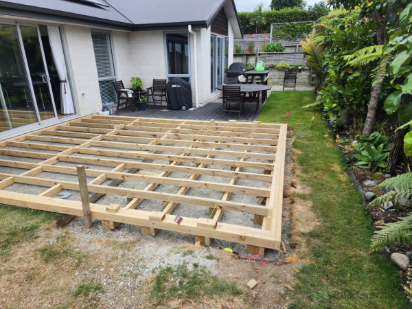 Hi we build decks fences retaining walls do concrete work and digger work