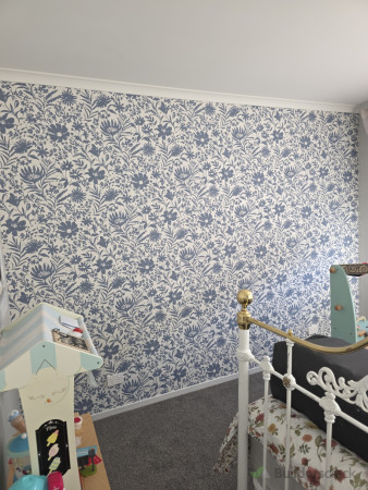Astar young proudly appreciating the wallpaper i hung for her, including the painting in her master bedroom