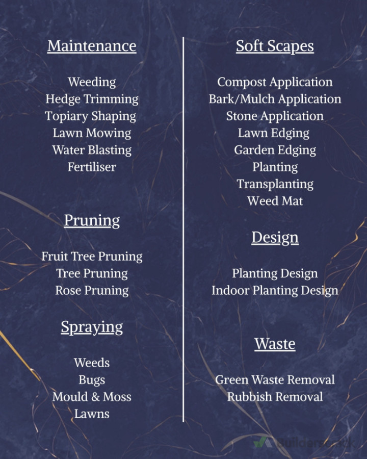 I provide all services regarding gardening, waste removal, planting and design
