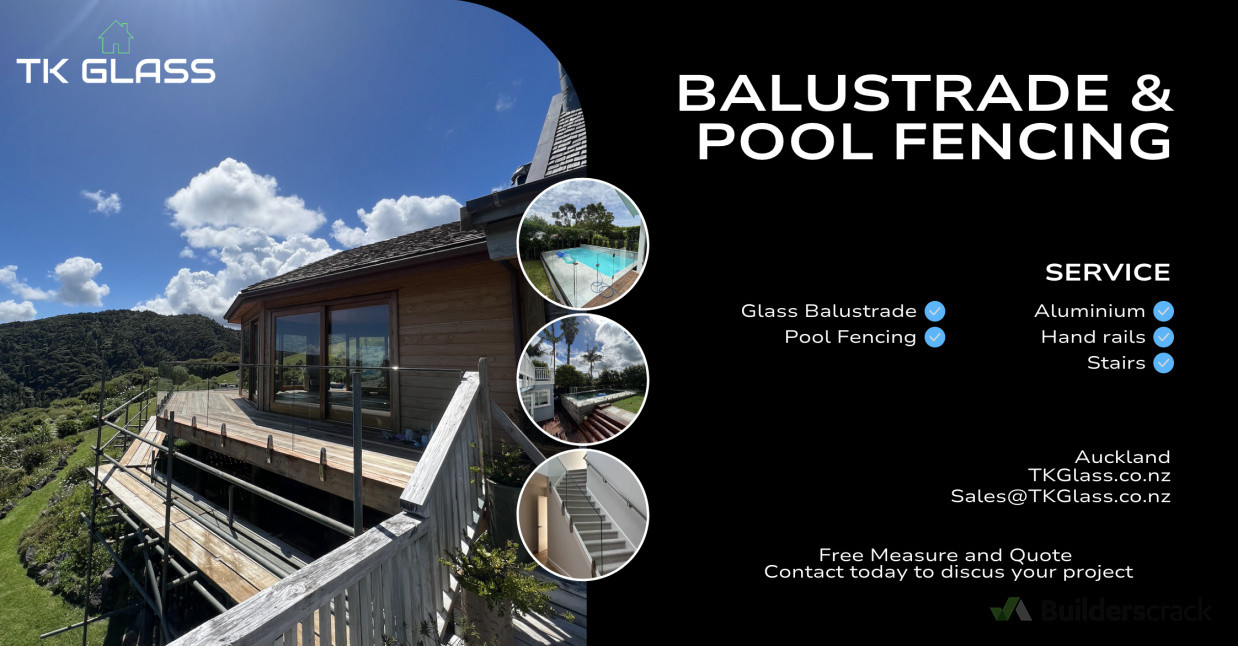 TK GLASS is your trusted, 100% New Zealand-owned expert in glass and aluminium fencing solutions, proudly serving Auckland and surrounding areas. We specialise in the design and installation of glass balustrades, glass pool fencing, and aluminium fencing for both residential and commercial properties. Our high-quality, custom-made solutions combine safety, style, and durability—all at competitive pricing. Whether you're looking for frameless glass balustrades, semi-frameless pool fencing, or aluminium boundary fencing, we ensure every project meets New Zealand safety standards while enhancing your property's value and visual appeal. Looking for reliable glass or aluminium fencing in Auckland? Contact TK GLASS today for a free quote.