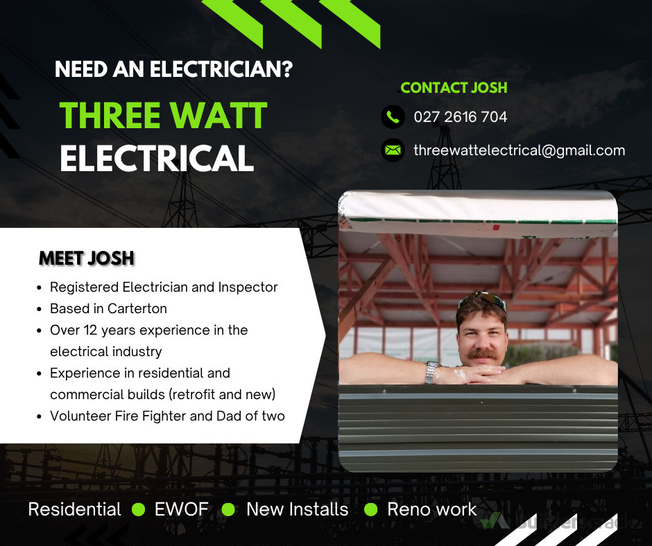 Three Watt Electrical is a Carterton-based electrician servicing Wairarapa and beyond!