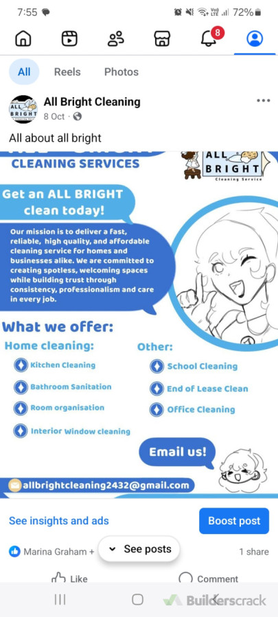 Hi I have been working at a high school for 5 to 6 years. Was a supervisor running a team of 12 people. Unfortunately I decided to leave because my boss went into liquidation I chose to leave an create my own business. I feel like it was time to move on. I am becoming a sole trader an hopefully if I get clients I can help other people working with me. I am a hard worker all ways on time. When I do a job I can easily get it done no mater where the job is.