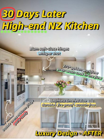 With teams in Hamilton and Auckland, we supply and install kitchens, bathrooms, flooring, garage doors, and custom curtains/blinds — no job too small.