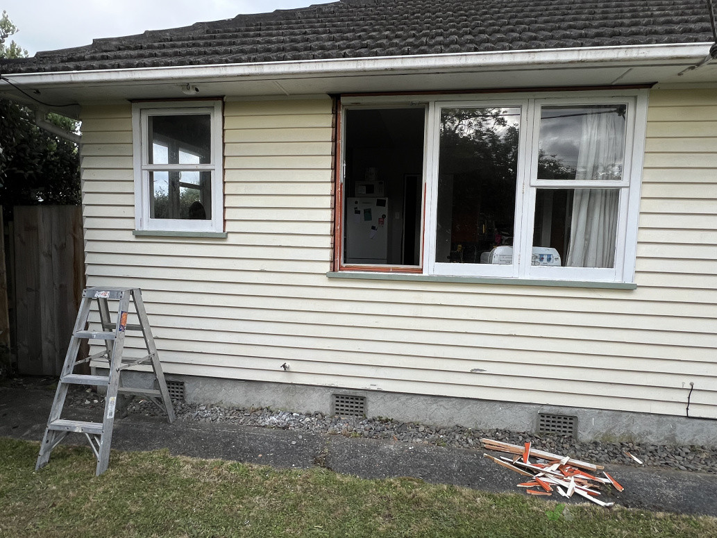 Re-locate external door, adjust and remove exisiting timber joinery new sliding door to laundry, kitchen install
