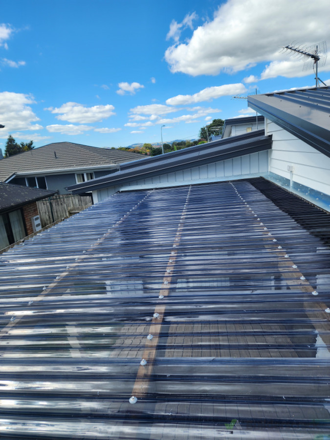 We had the pleasure of cladding two Deck/ Pergola rooves in Hamilton, ensuring no leakage and no lifting in heavy weather.