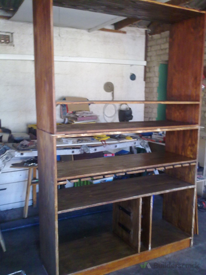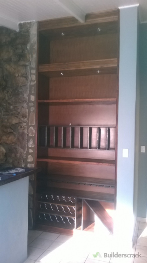 I built a back-to-back shelf/room devider, a bar cabinet on one side and a Book and media shelf on the other.