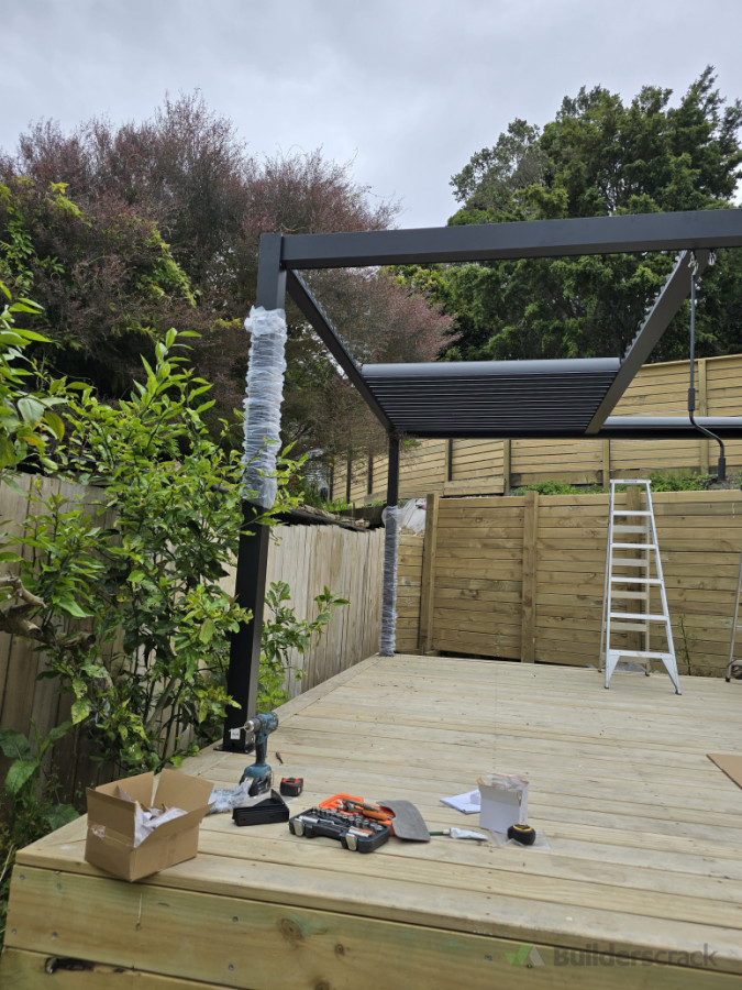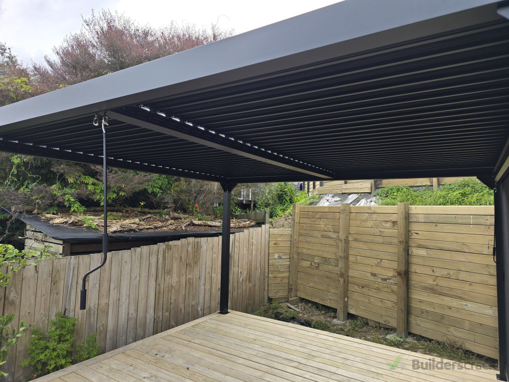 Louvre roof system 4m*4m Black with louvre mesh screen