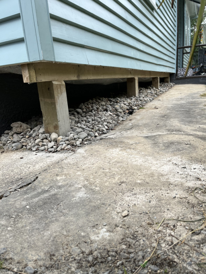 A conservatory was cantilevered off a ring foundation, which now caused subsidence. We leveled and piled the area.