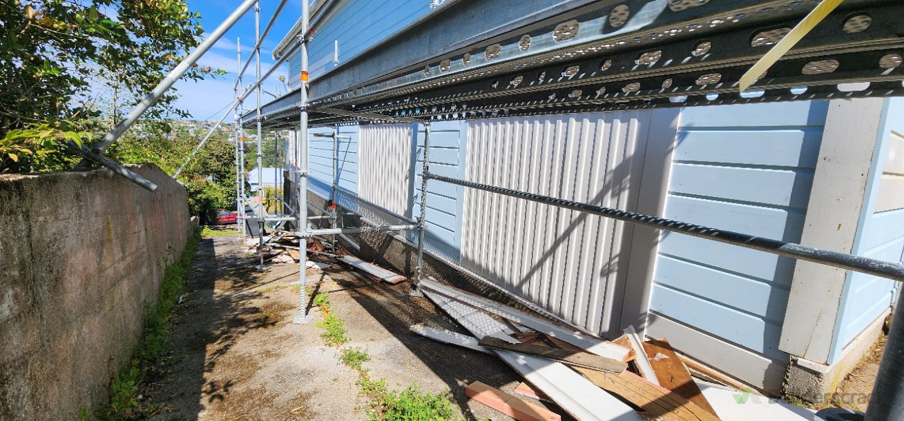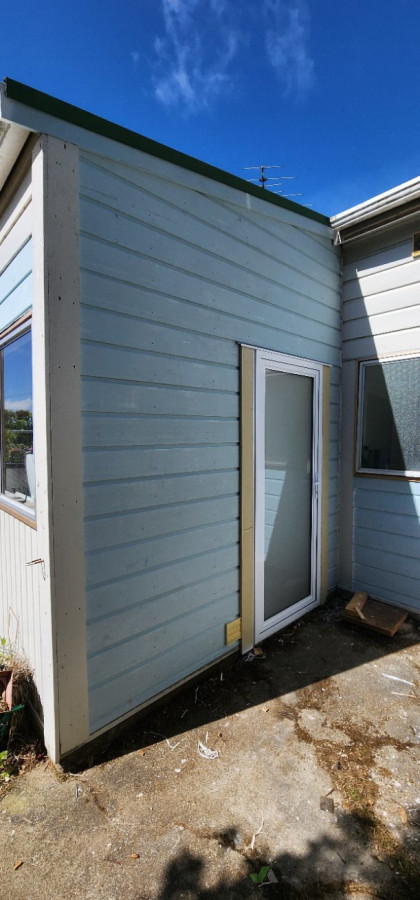 This rental had been left to the element for far too long. We installed MANY metres of new cladding and a new back door to ensure its survival.
