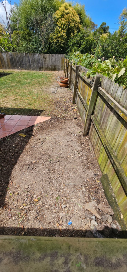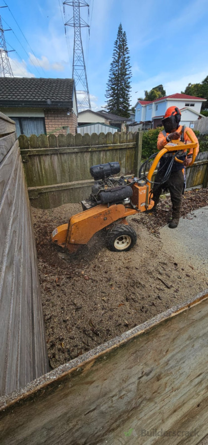 Remove all trees/bushes ready for pathway to be done and remove everything growing on fence and stump grind the new and old stumps