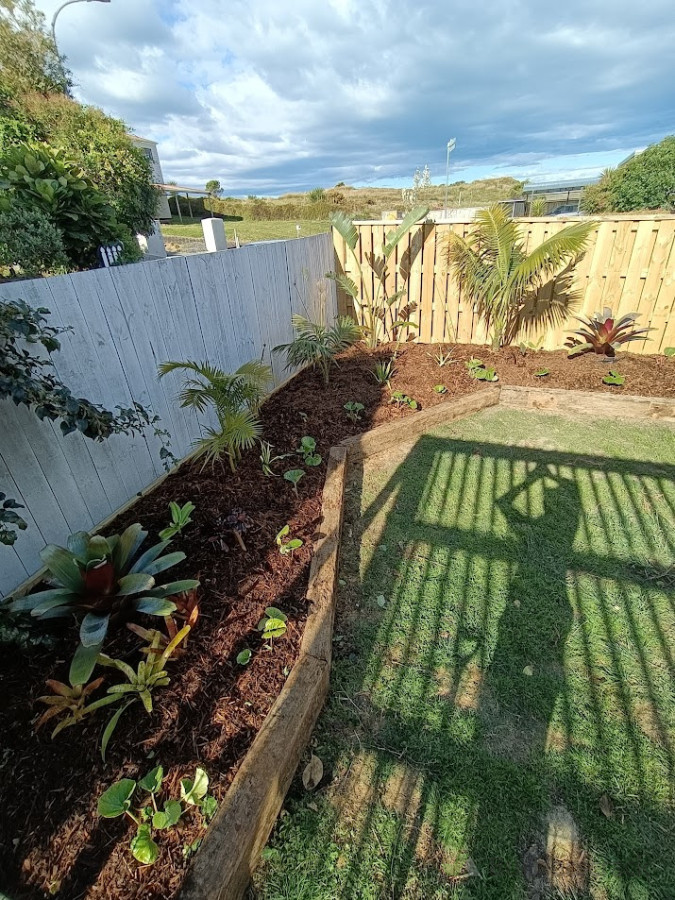 This was a very fun project at the far end of papamoa, we turned a very dull and dry frount lawn into an amazing walk through tropical garden.