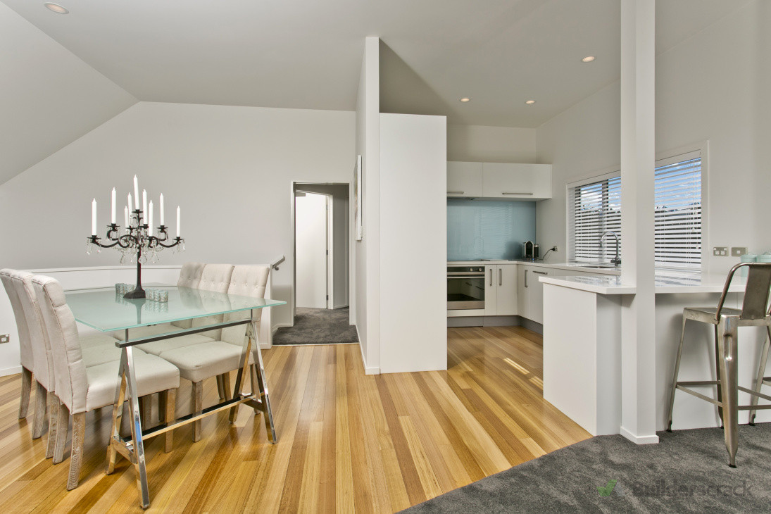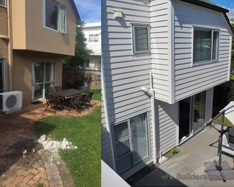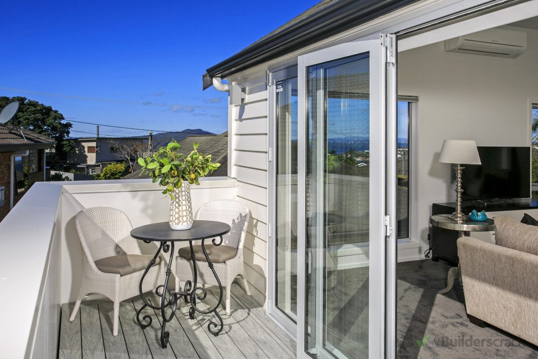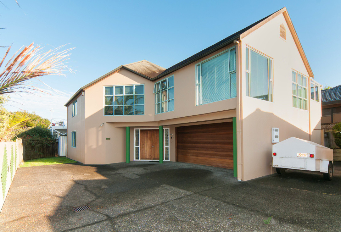 A plaster home in Castor Bay was completely reclad in weatherboard and transformed with new bathrooms, kitchen, flooring, joinery, flooring and landscaping. Full project management and carpentry services provided by NFL Construction