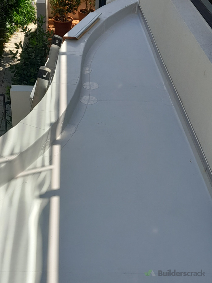 The job consisted of overlaying GAF Everguard TPO membrane over an existing and leaky butynol membrane. We use Fleece back TPO Membrane as requested by the Builder, and the plain TPO Membrane for the upstands and the internal gutter box.