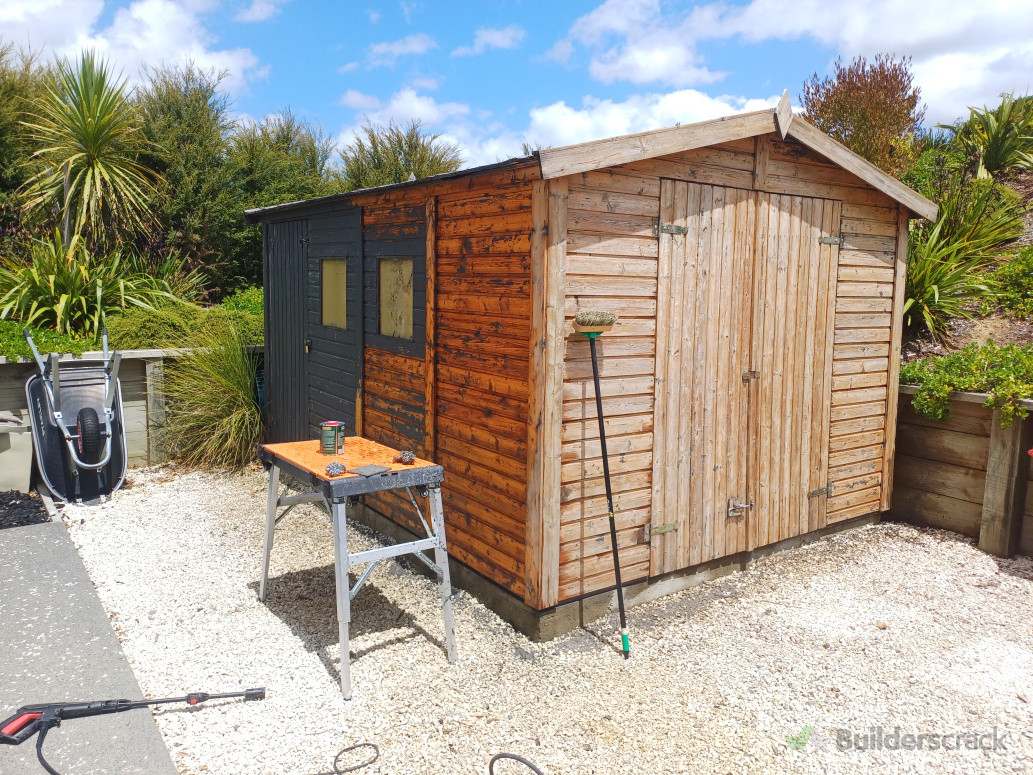 Strip paint and repaint - Square-up and brace leaning shed