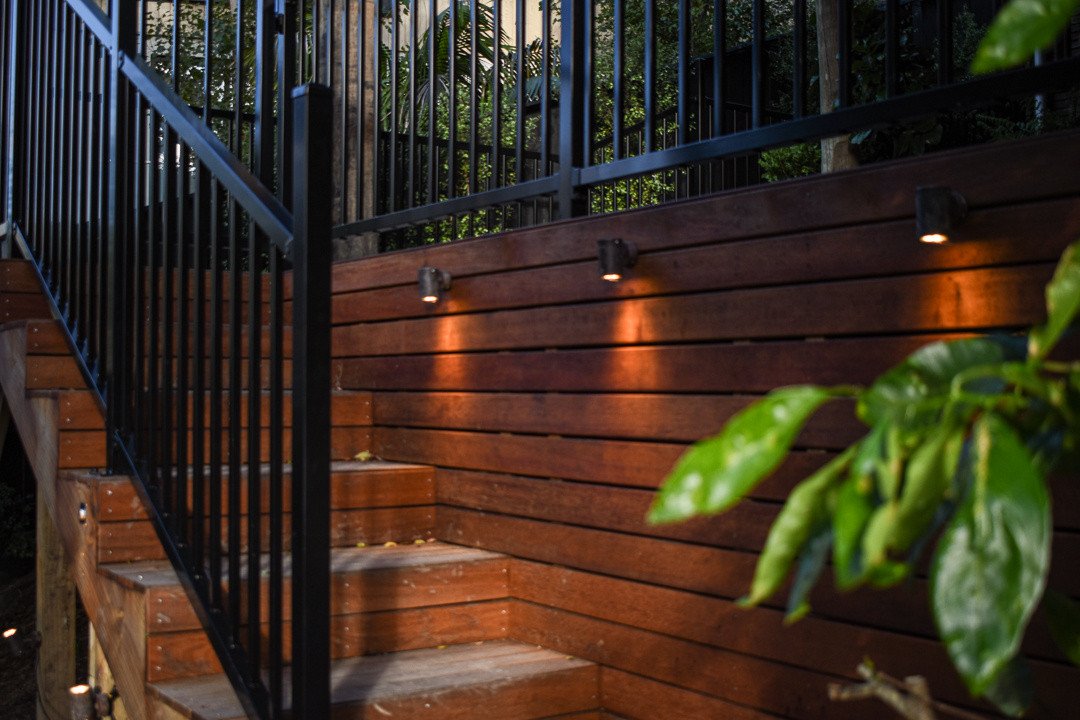 What set this project apart was the flawless mitring of the stair treads and risers, carefully aligned to match the gaps in the kwila lining of the retaining wall. This intentional design choice created a cohesive and polished look, elevating the visual impact of the space.