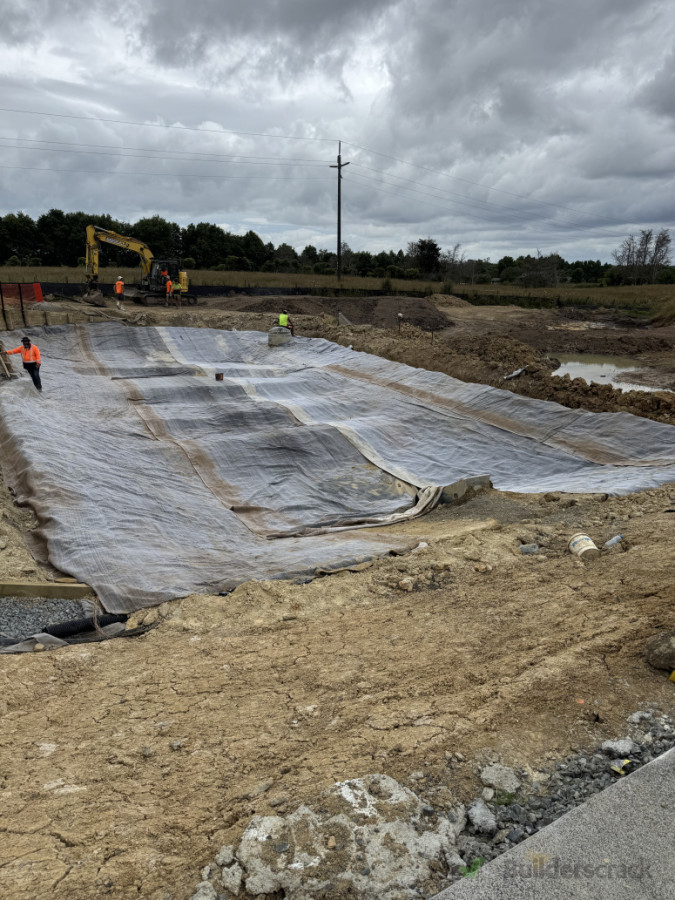 • Placement of engineered soils, gravel layers, and drainage pipes to facilitate water infiltration and purification.