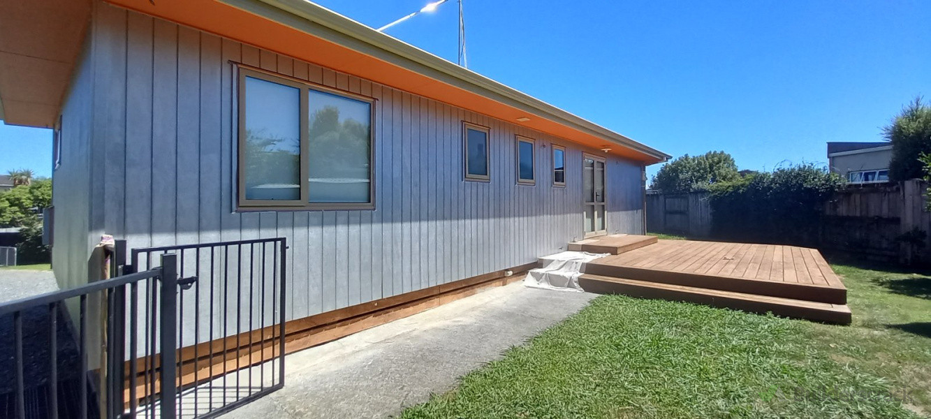 It's not enough to have a beautiful finish, it also has to be good and long-lasting. In this case, that means a penetrating and bonding primer and two top coats on the cladding. Plus changing the color of the soffit.