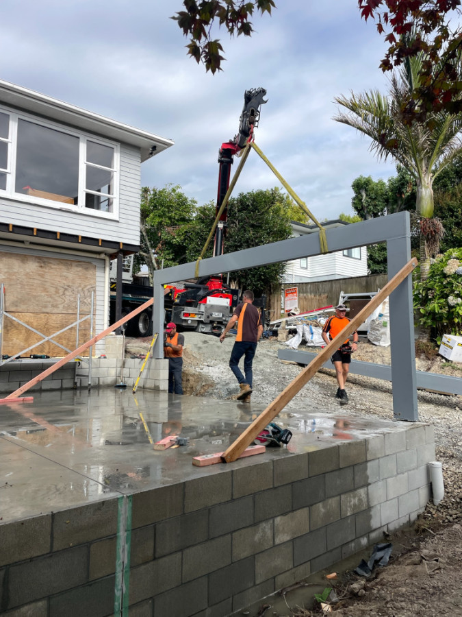 Our clients wished to extend their two-storey house to create a larger open living space upstairs and a double garage downstairs. The construction is currently in progress.