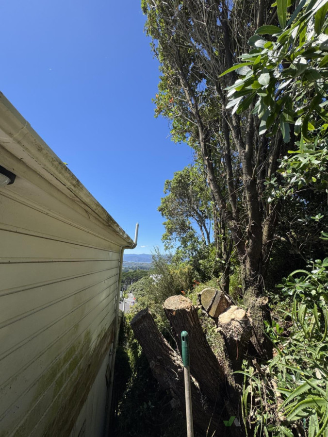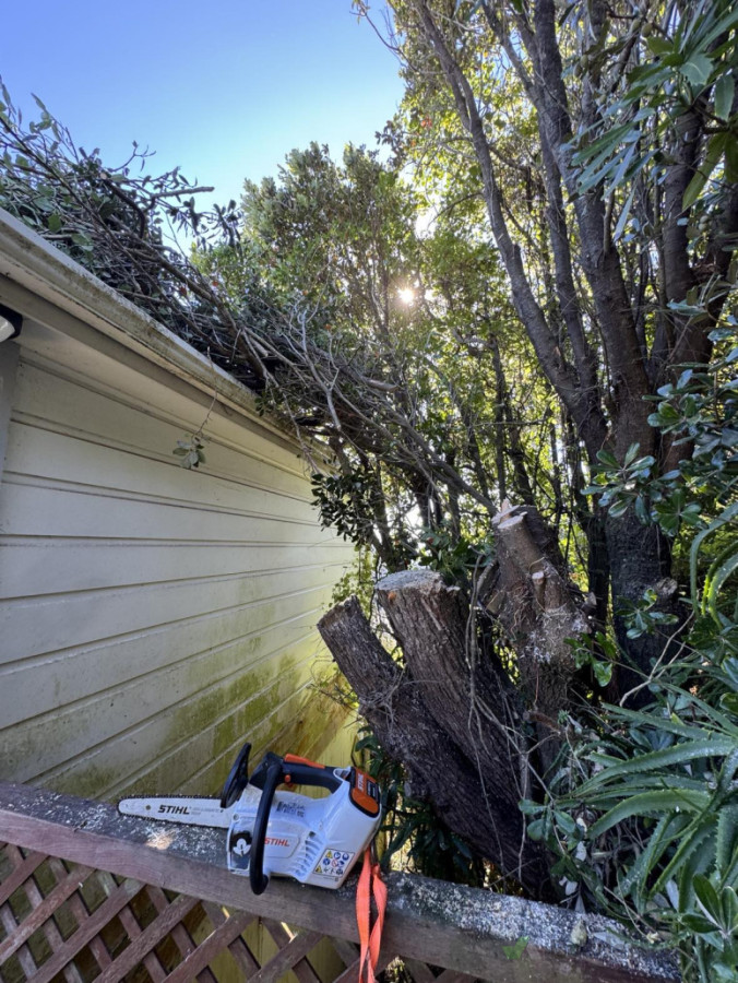 A client reached out to us about trees growing up and over the side of their house, providing an easy pathway for rodents to access the roof and enter through the soffit. We provided a no-obligation quote and got to work the following week, had it all done in the morning making sure to leave them a nice little pile of firewood.