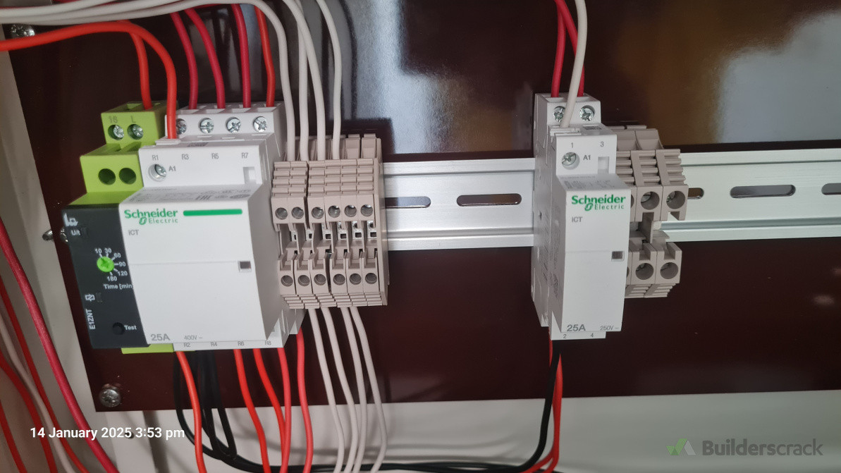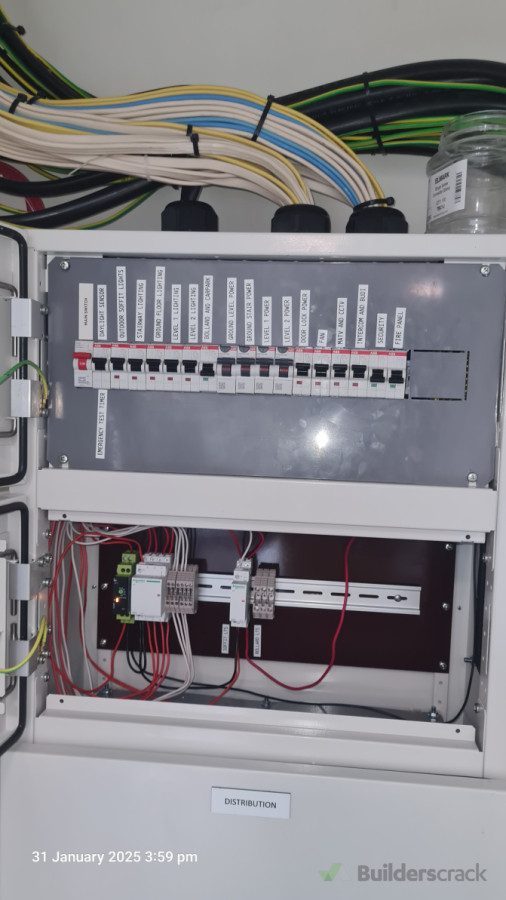 New wiring built main feed to 9 units and connet to communal area lights, out door lights with sensors and power points and fans.