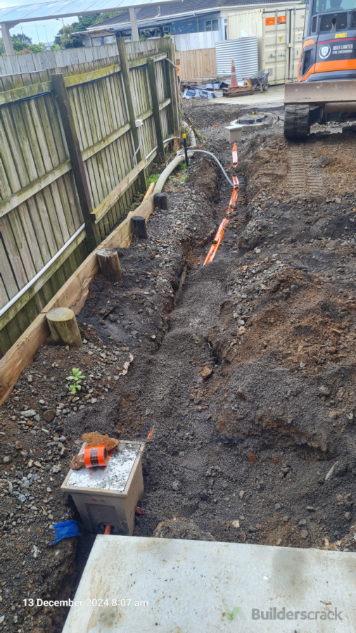 to install 9 outdoor lights, put 2 pits into the ground and connect 50mm ducts for new wiring .