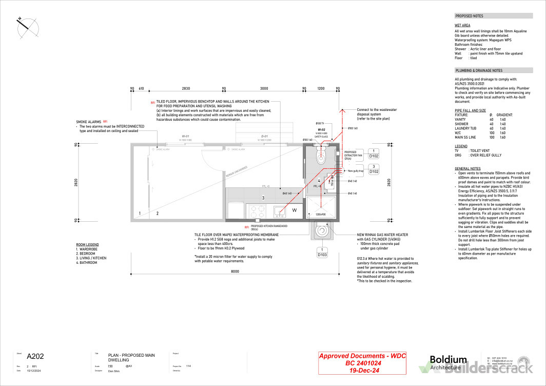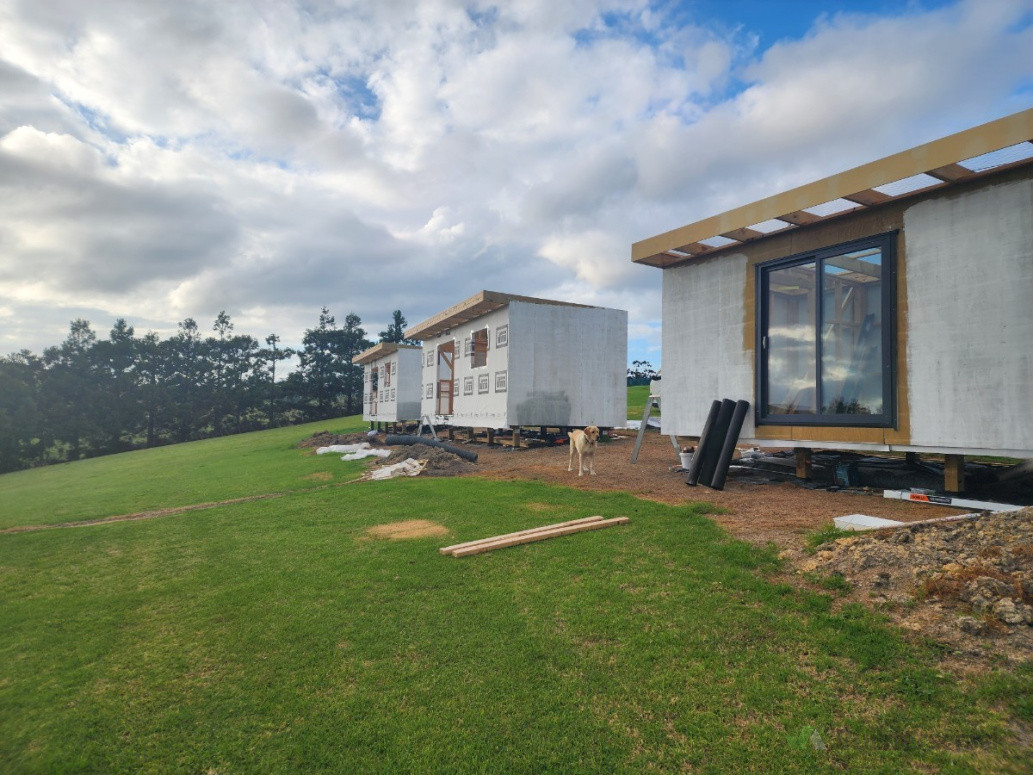 Four tiny homes were constructed under Exemption Schedule 1 using our working drawings, and building consent was obtained for the addition of sanitary fixtures and a kitchen. Construction is currently in progress.
