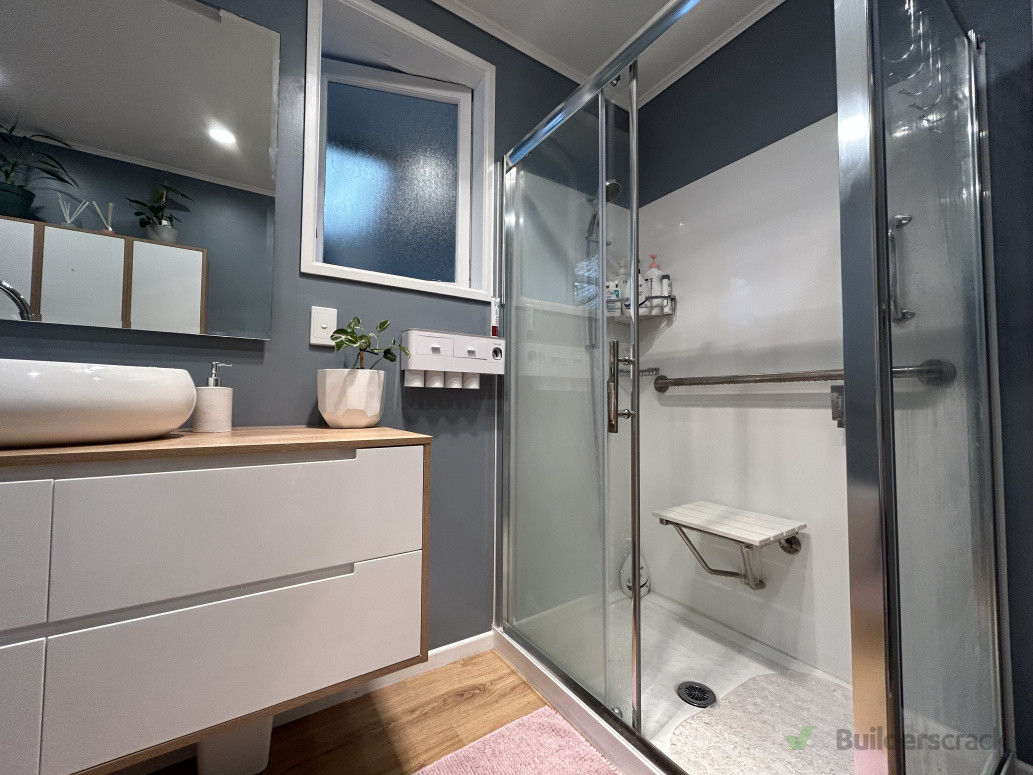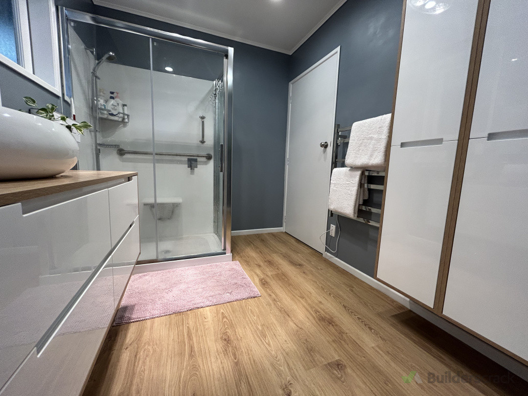 "The 'after' image showcases a bathroom designed to meet the homeowner's needs. The renovation has not only enhanced functionality and increased storage but also created a more efficient layout. This improvement has enabled the homeowner to live independently, resulting in a more convenient and enjoyable experience.