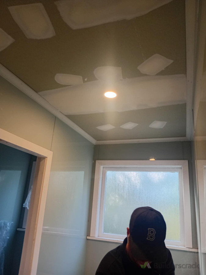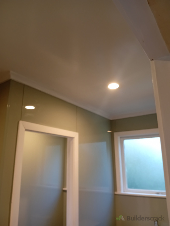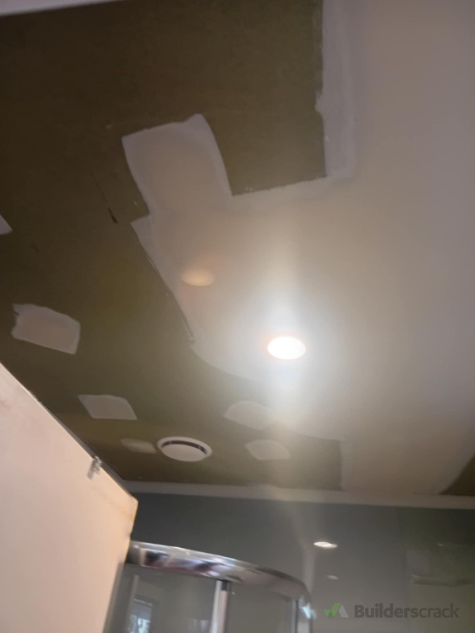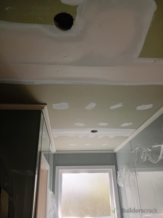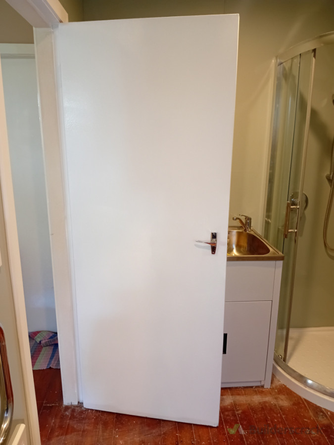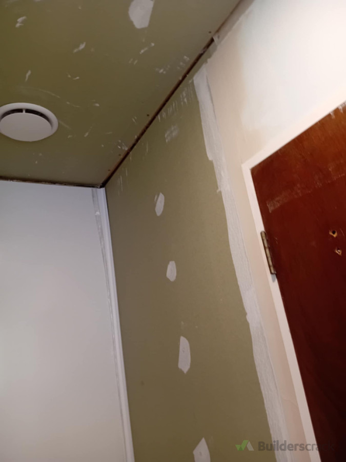 Replastering and repainting a bathroom. Walls, doors and ceiling