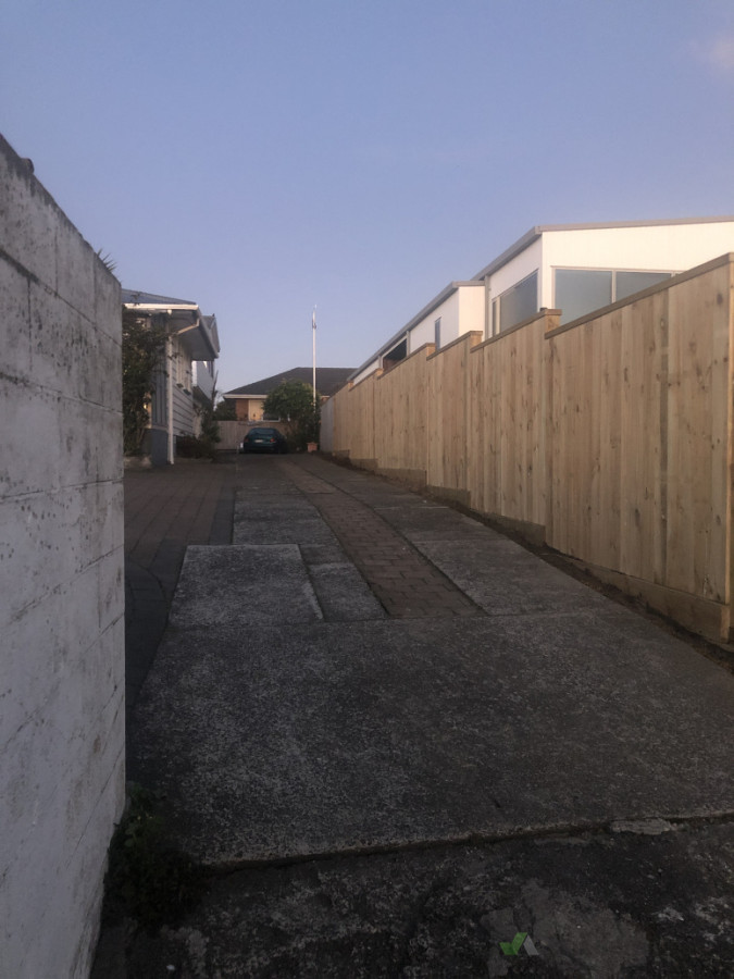 1.8m fence with top cap and retaining staggered to accommodate the sloping driveway
