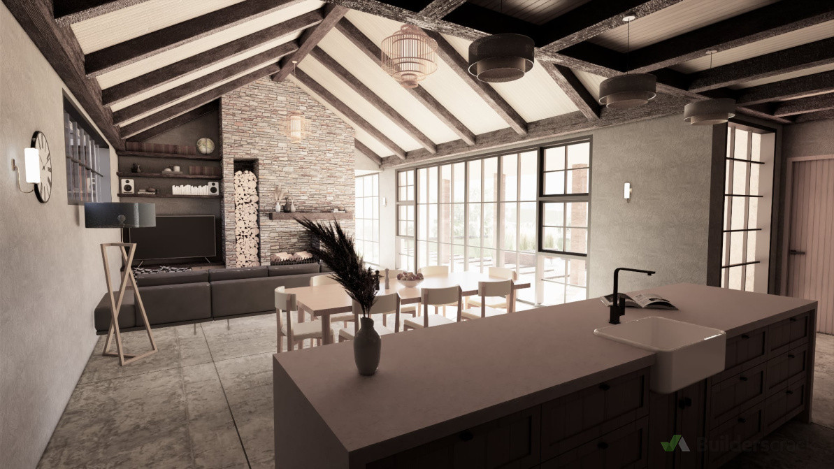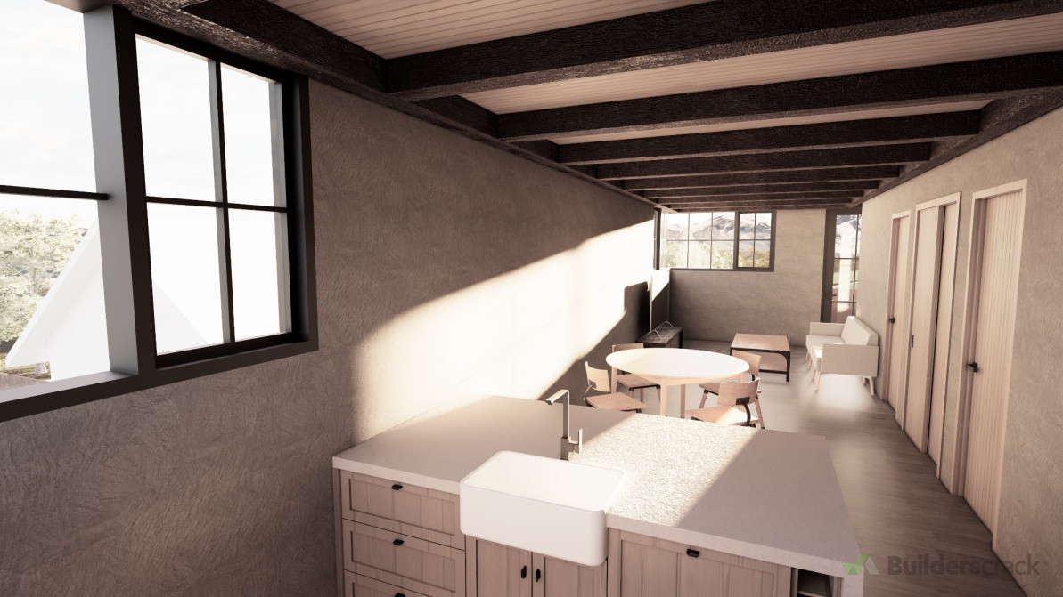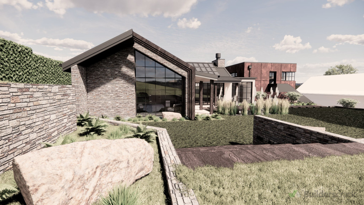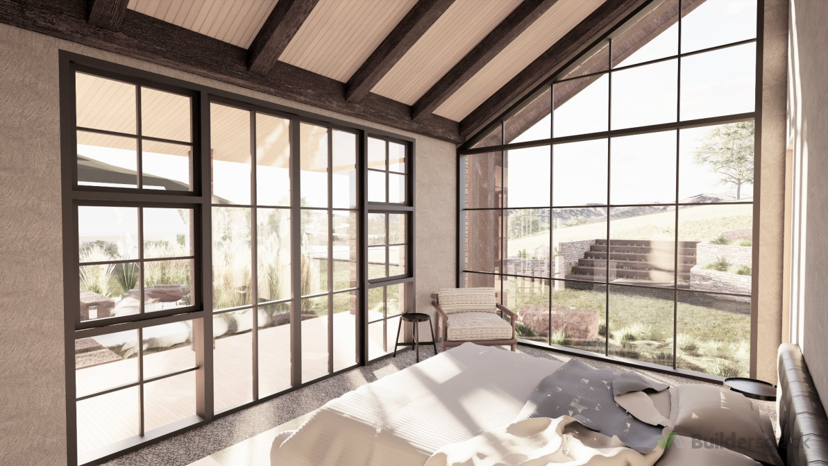 This home is a seamless composition of natural materials, thoughtful craftsmanship, and contemporary refinement, creating a strong yet elegant presence within its environment. Locally sourced stone forms the backbone of the design, grounding the structure in its surroundings while creating a continuous flow from exterior walls to interior fireplaces, reinforcing a sense of permanence and cohesion. Corten steel cladding, with its evolving patina, introduces a rich, organic contrast against the cooler tones of the corrugated metal roofing, which adds a contemporary edge and durability. Timber elements, from exterior pergolas to exposed interior beams, soften the composition, bringing warmth and authenticity to the design.